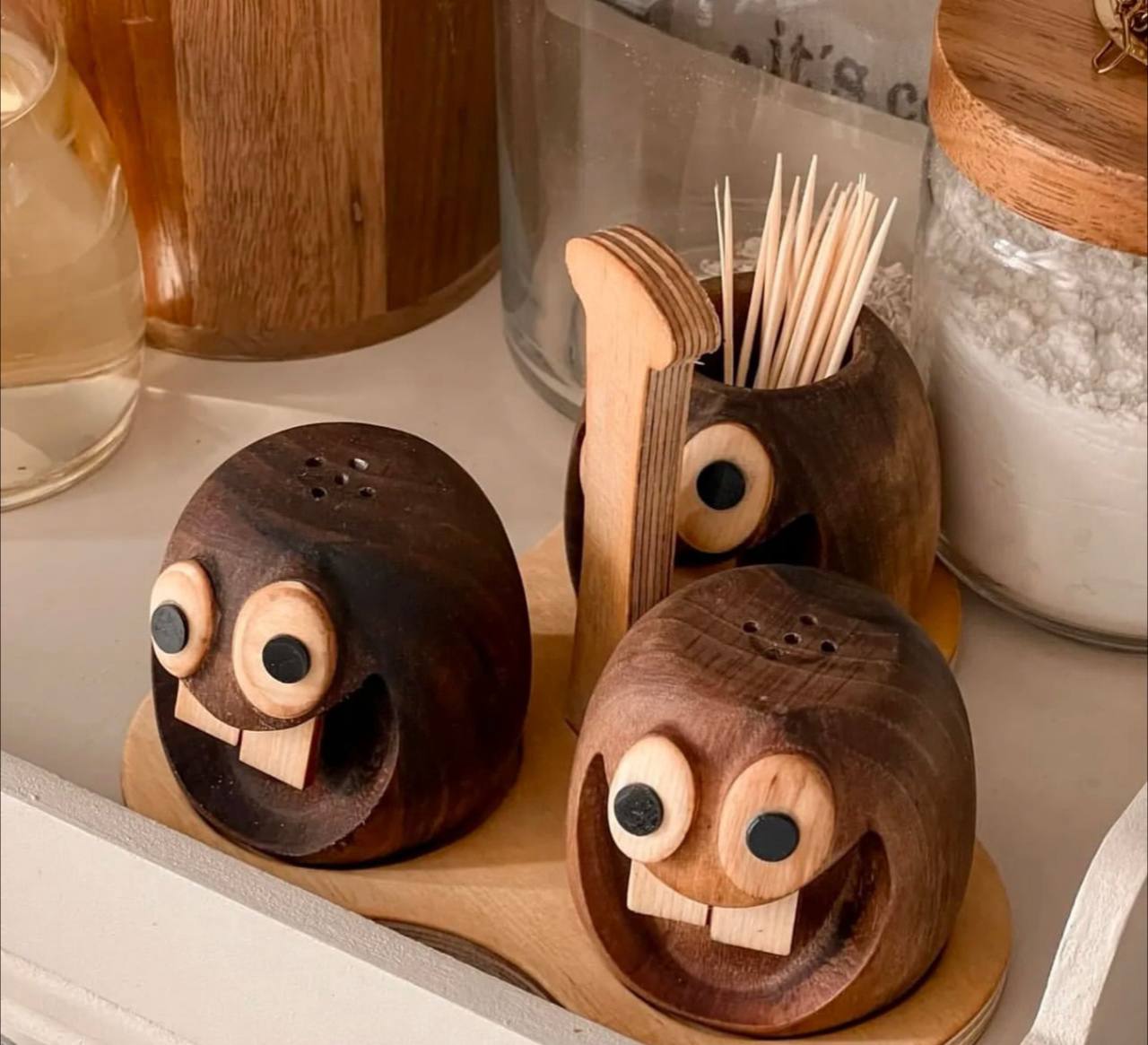 نمکدان و جا خلالی ایموجی چوب گردو